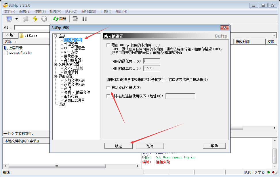 您也可以设置您的FTP工具,取消被动传输:如 8UFTP的设置